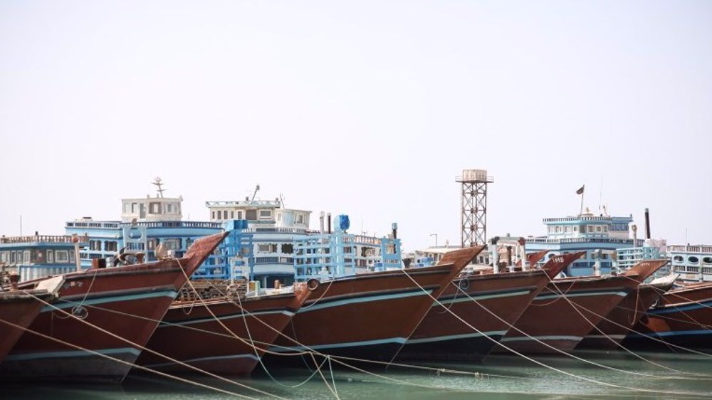 Several traditional Lenj boats docked at a port in Bushehr, Iran, on the Persian Gulf. (File photo by Tasnim News Agency)