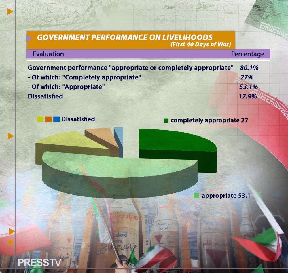 Despite the pressures of war, the survey found that 80.1 percent of respondents evaluated the executive branch of the government's performance in managing the supply chain and distribution of essential goods during the first 40 days of the imposed war as "appropriate or completely appropriate."