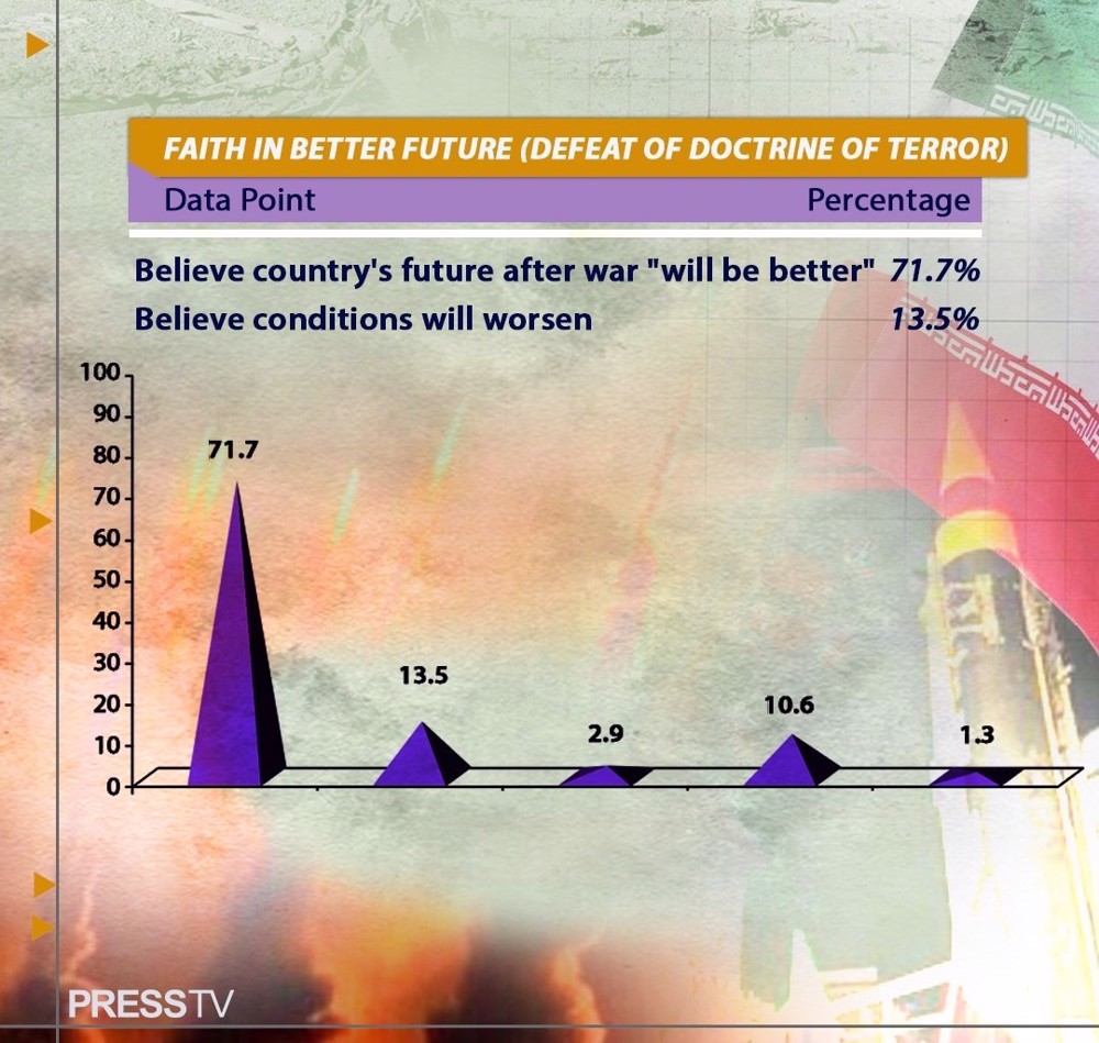 Despite sustained enemy military threats against Iran's vital public infrastructure and repeated warnings of "shock and awe" designed to send the country back to the "Stone Age," the survey found that 71.7 percent of Iranians believe the country's future after the imposed war "will be better."