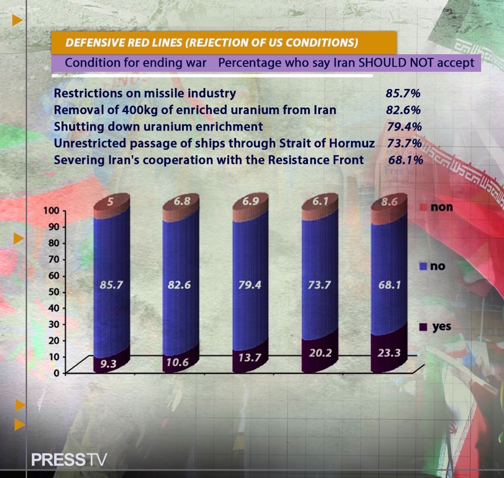 The survey, which polled thousands of Iranians across the country during and immediately after the imposed war, found that an overwhelming majority of respondents said Iran should not accept US maximalist demands for an agreement and a permanent end to the war.